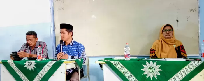 Wakil kepala sekolah bidang humas Ahmad Al farizi M.Pdi memberikan siraman rohani  dalam rapat koordinasi guru Smamuga (Zulkifli)